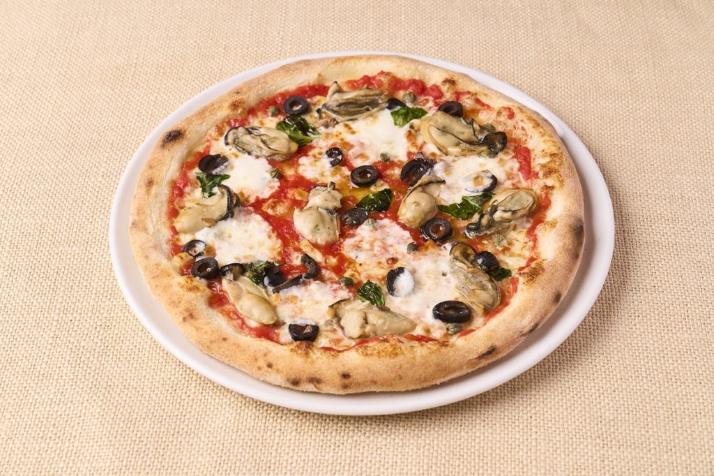 薫香がふわりと立ちのぼるスカモルツァチーズと、とろけるモッツァレラチーズに、ぷりぷりの牡蠣をトッピング。ケッパーやアンチョビ、オリーブの塩味が味わいを引き締め、チーズのコクと牡蠣の旨味が重なり合う、ワインとの相性もぴったりの一品です。