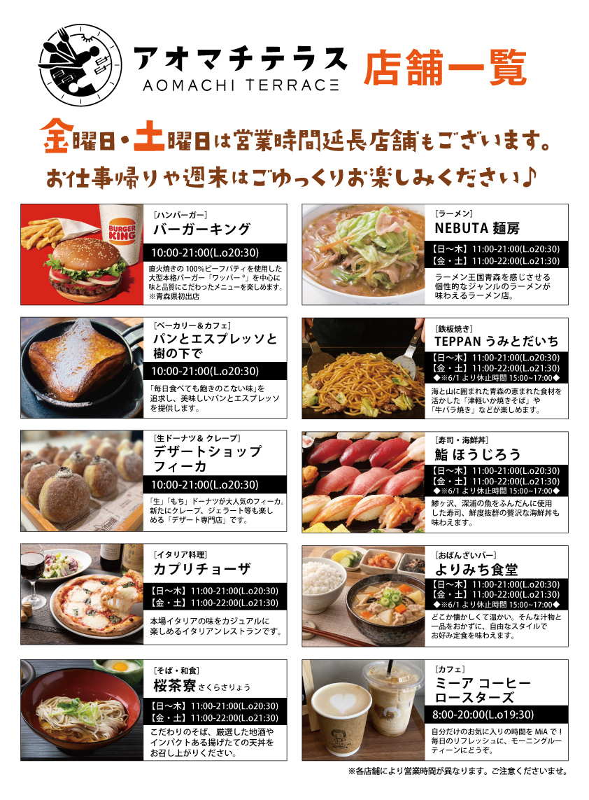 「青森の街を昼も夜も食の力で明るく照らす」をコンセプトとしたフードホール 「アオマチテラス」が、いよいよ3月27日㊎にグランドオープンいたします。