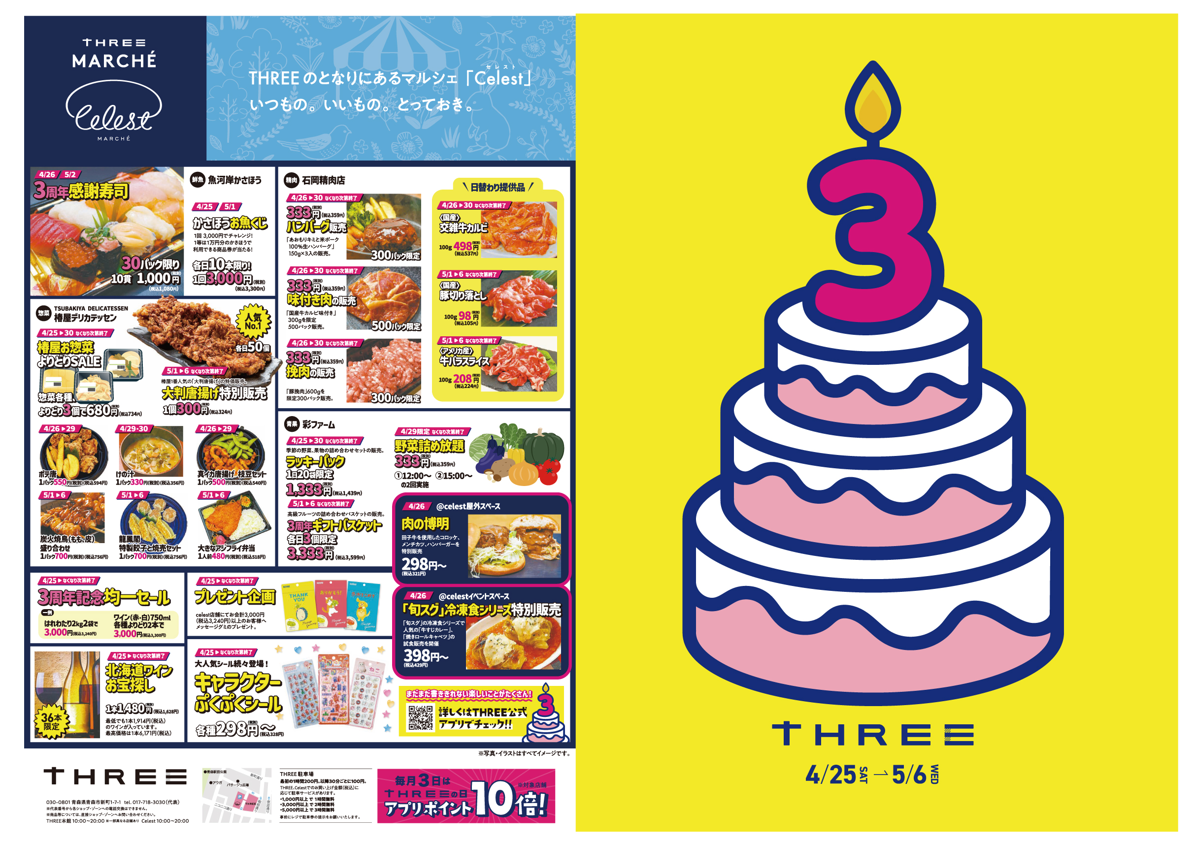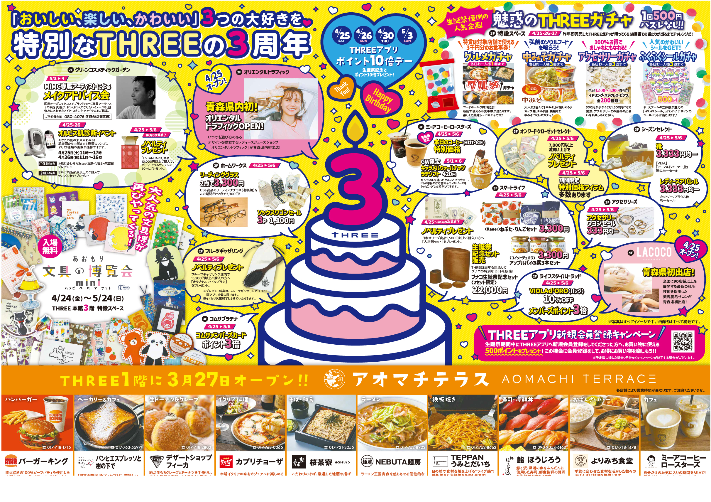 楽しい企画がぎゅっと詰まった、ワクワク感たっぷりのTHREEの3さいのお誕生日をみんなで一緒にお祝いしましょう♪