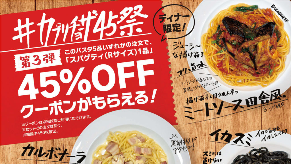 本館1F「カプリチョーザ」から45周年記念企画、第3弾のお知...