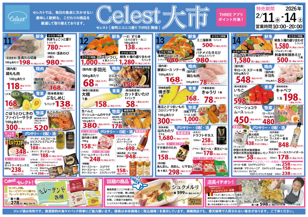 2026/2/11㊌㊗~2/14㊏まで、アネックス棟1F Celest(セレスト)にて「Celest 大市」を開催!