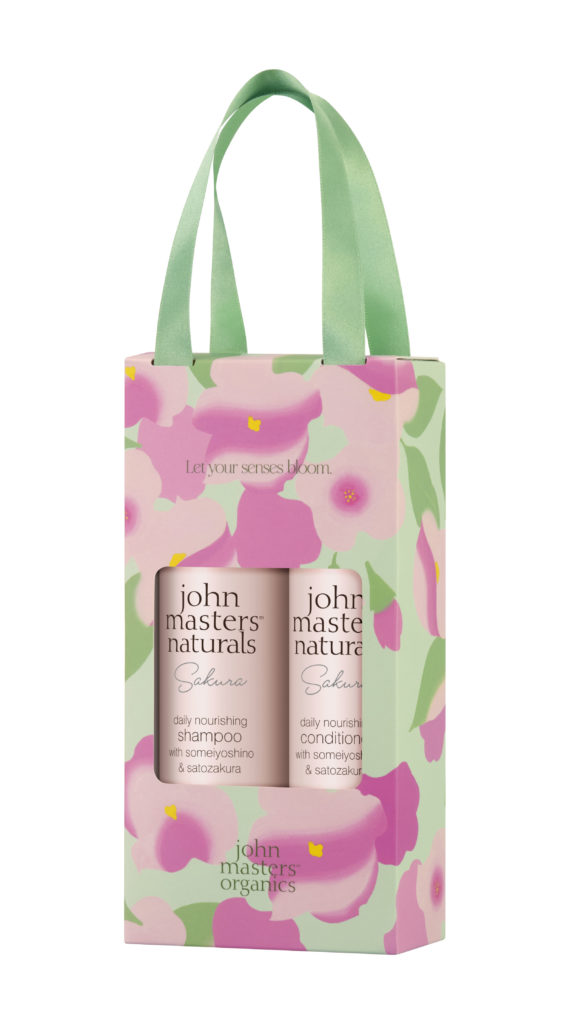 桜の香りにインスピレーションを受けたオリジナルブレンドのS&Sシャンプーサクラと、髪をなめらかに整えるS&Sコンディショナーサクラのヘアケアセット。