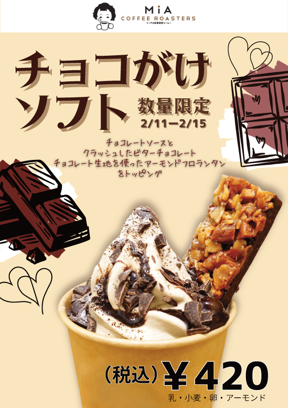 【MiA COFFEE ROASTERS】2/11㊌~2/15㊐ 数量限定 チョコがけソフト