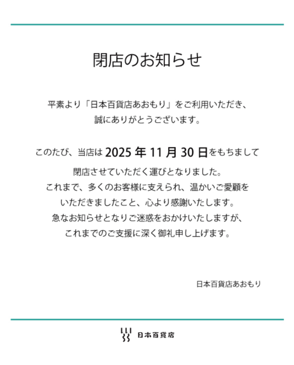 【日本百貨店あおもり】閉店のお知らせ